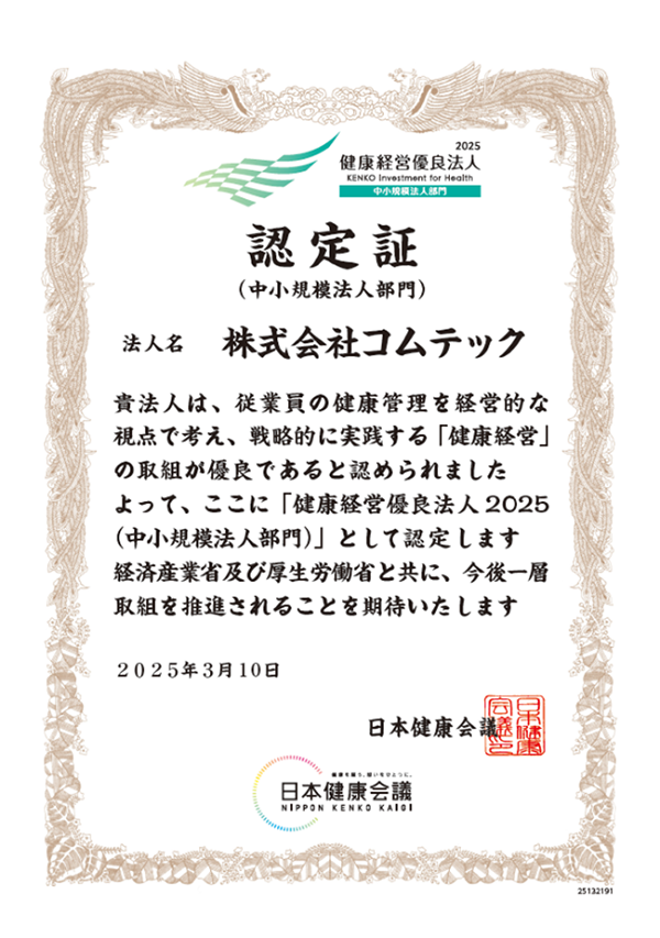 健康経営優良法人2025(中小規模法人部門)に認定されました。
