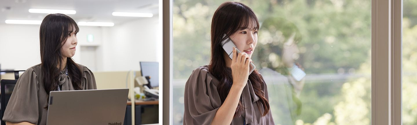 営業としての経験はまだまだ不十分ですが、営業として実感しているのは人脈の大切さです。ローテーション研修でも人脈の大切を知った私ですが、営業では社外の方との人脈がいかに大切かを痛感しました。実際、ある量販店法人では、販売促進施策がうまくいった結果、シェアが20%もアップしたことがあります。人脈を広げ、売上げ拡大につながる仕掛けを施すことで着実に結果が出てくることがわかり、手ごたえを感じるようになっています。女性の営業はまだ私一人ですが、男女差はありませんし、もっと女性の後輩が増えていってほしいと思っています。子どもができても働きながら子育てをしていきたいですし、託児所などそれを可能にする環境も整っています。